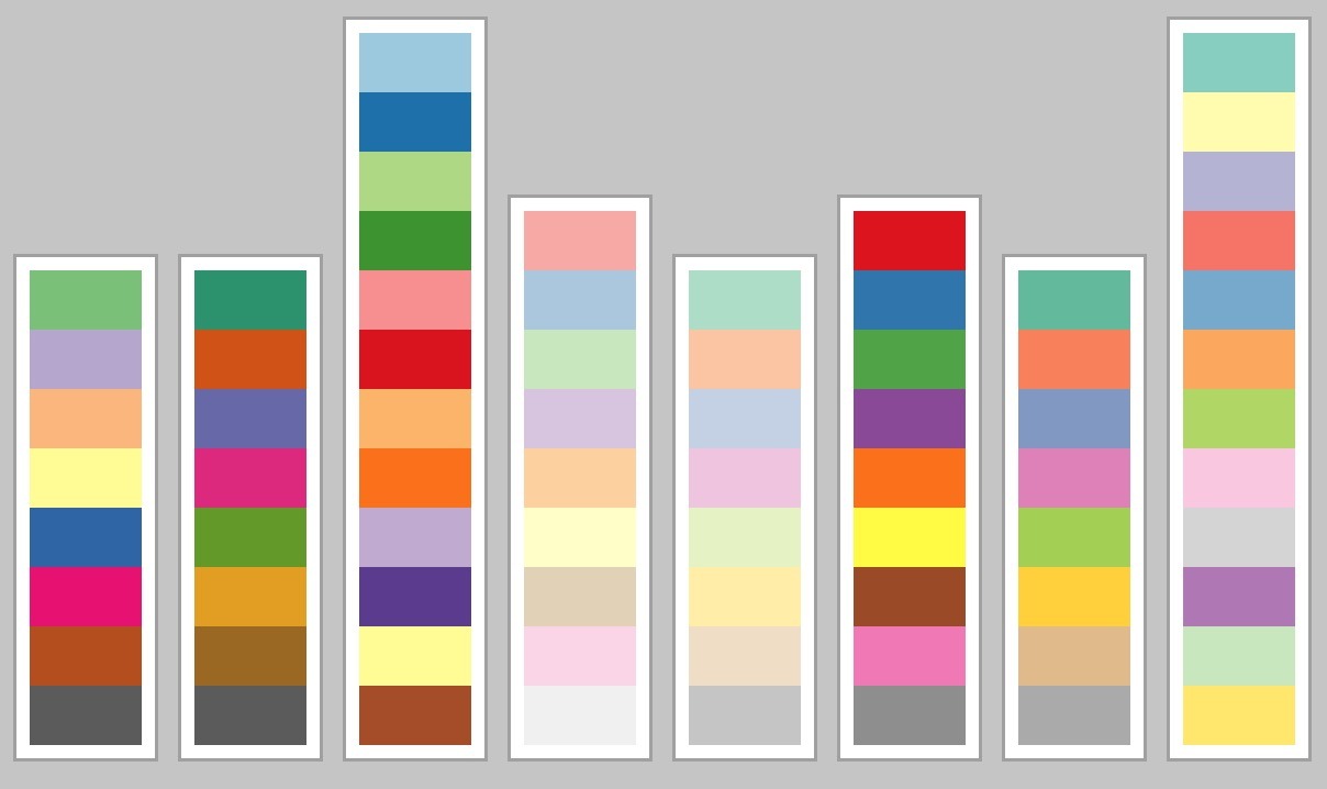 독립적인 데이터를 시각화 하는데 쓰인다. 이 팔레트의 색상을 주로 categorical color 라고 부른다.